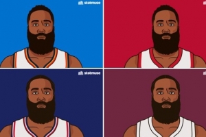 体育资讯2月7日讯 美国数据媒体StatMuse列出了哈登在各支球队首秀的数据: