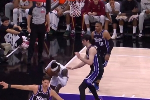 GIF-施罗德突破到篮下被前队友雷诺打到